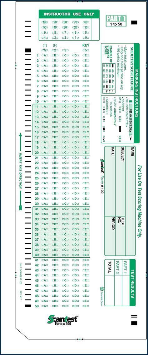 Read scantron forms printable PDF